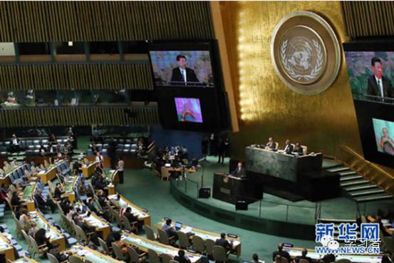 2015年9月26日,习近平在纽约联合国总部出席联合国发展峰会并发表题为《谋共同永续发展 做合作共赢伙伴》的重要讲话。 新华社记者 刘卫兵 摄