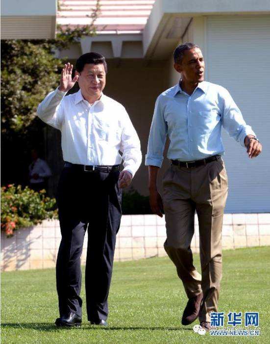 2013年6月8日,国家主席习近平在美国加利福尼亚州安纳伯格庄园同美国总统奥巴马举行中美元首第二场会晤。这是会晤开始前,习近平和奥巴马在庄园中散步。