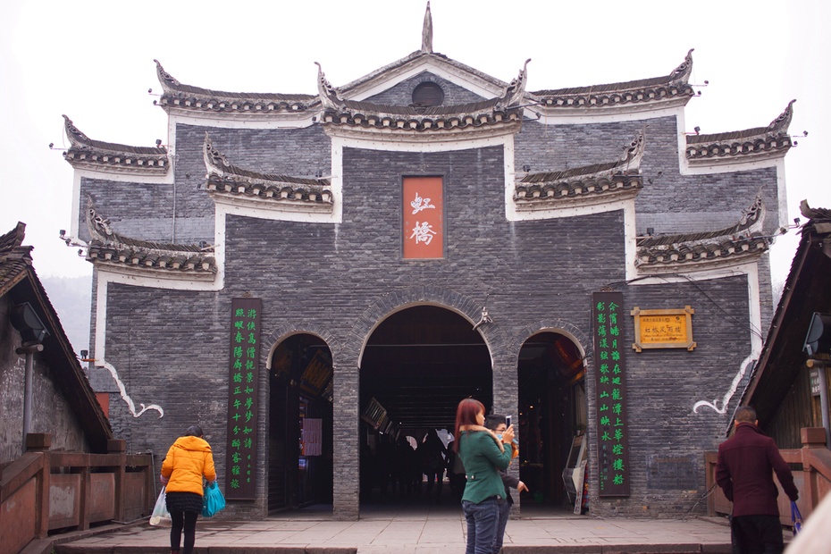她远远地望着虹桥,那倒影在黄泥的水面上尽显失色。这失去阳光的古镇,这等不到白雪的古镇,如主人给客人准备了米饭,摆上了菜肴,就是不给客人吃饭用的餐具。