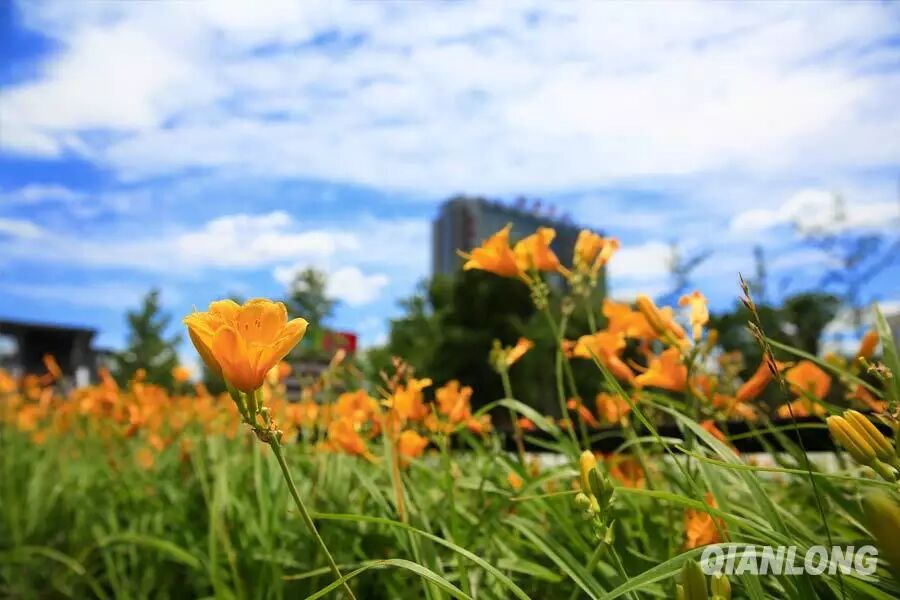6月11日,北京晴空如洗,中关村一处绿地内鲜花盛开。千龙网记者 王自彬摄