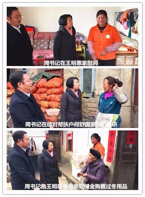 在王明惠家,周文书记与她亲切交谈,到猪圈、土地里详细了解她家近期情况,并给她提出发展建议,希望她能养殖品种更好的可乐猪,提高养殖效率。看到王明惠家5亩土地冬季撂荒,周文书记提出要加强土地利用,在冬季种植小葱、大蒜等经济作物,改变种植习惯。看到王明惠家老母亲,周文书记拿出500元慰问金,请她保重身体,改善生活。