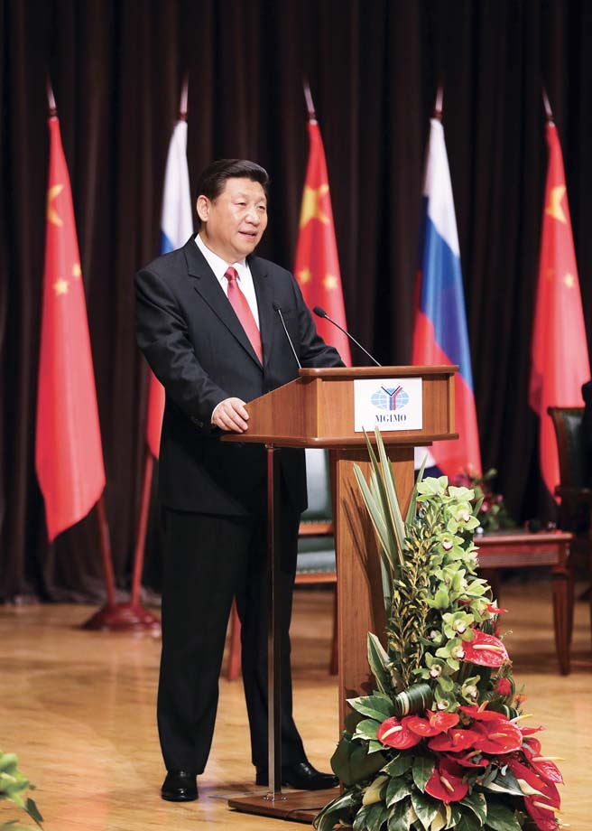 2013 年 3 月 23 日,国家主席习近平在莫斯科国际关系学院发表演讲