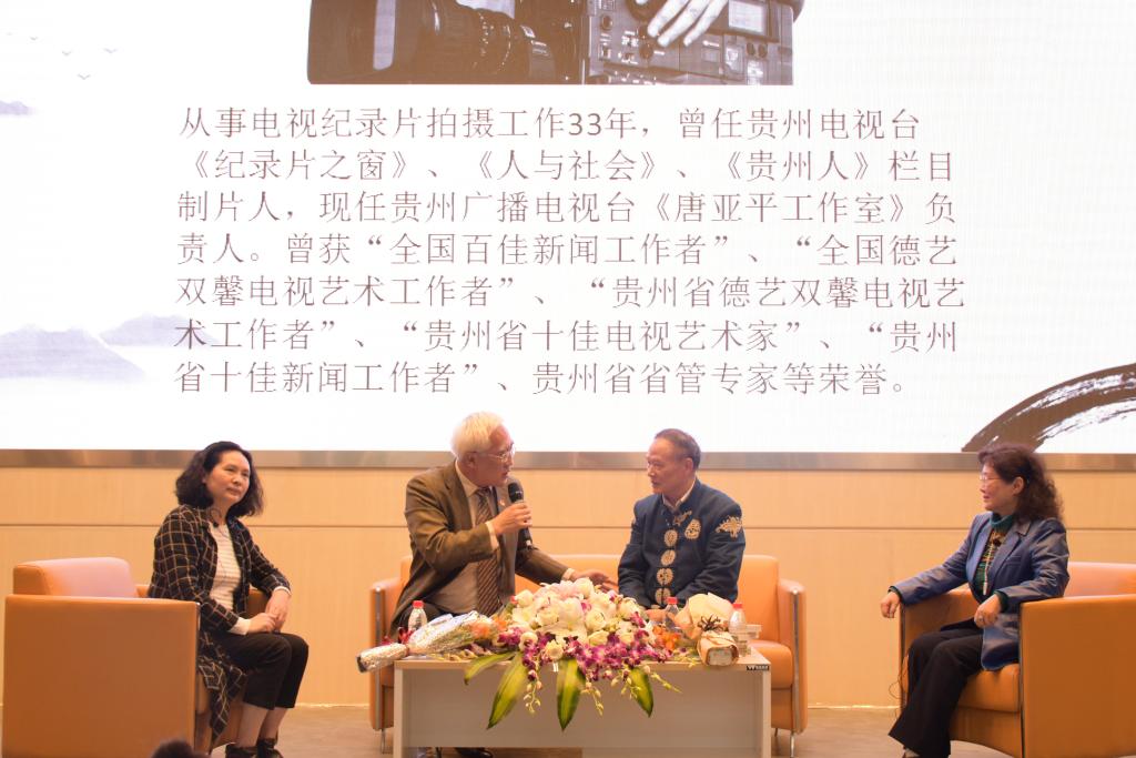 访谈环节由贵阳知名作家洪作立先生主持专家。在座谈会上,贵州民族大学水书文化研究院副院长潘朝霖,著名电视纪录片制片人唐亚平和贵州省管专家、贵州省哲学社会科学学术带头人、贵州师范大学首席专家朱伟华与大家分享了自己的一些经历和感悟,唤起了同学们的文化认同感和文化自信感。座谈结束后,同学们专家们进行了互动交流。