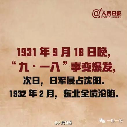 84年前的今天,1931年9月18日,“九一八”事变爆发。14年间,大片国土沦陷,3500万同胞伤亡。鲜血与抗争写就的历史警示国人:落后就要挨打,发展才能强大。今天,转发微信:勿忘国殇,吾辈自强!