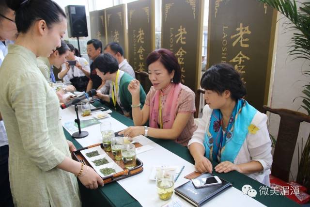 在当天的活动上,播放了“问茶山水、养生湄潭”宣传片,让广大中外茶友们切身感受到了湄潭的地理环境、历史文化底蕴和茶产业优势等。来自贵州省的茶艺师周潇潇进行了湄潭翠芽茶的冲泡技艺展示;贵州黔茗茶业总经理魏矗巍与在场嘉宾分享了特级、一级和二级的湄潭翠芽茶;贵州琦福苑茶业总经理叶章涛为茶友们隆重推介了遵义红红茶。在整个品鉴会的过程中,现场循环播放的背景音乐为我县茶农自创的花灯戏《十谢共产党》,副县长王文虹在活动中坦言,在湄潭县的每一颗茶树上都有爱的种子, “发展”、“共赢”、“感恩”是茶农们源于心底自然溢淌出来的情感,湄潭20多万茶农怀着一颗感恩的心,愿和中外广大茶友们一同分享优质、生态、安全的湄潭茶。