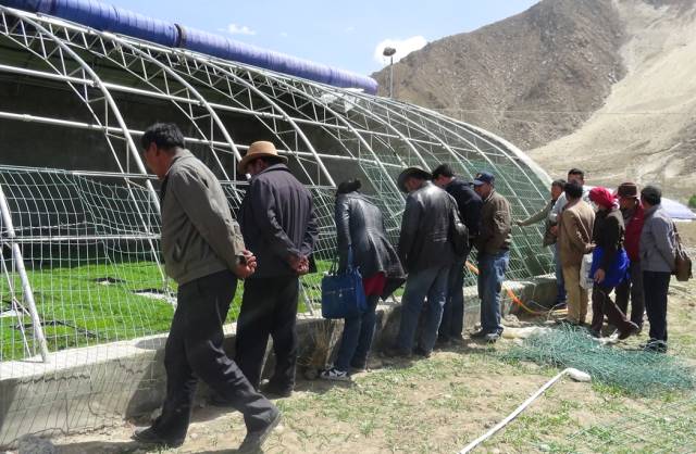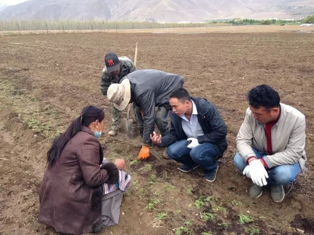 ↑曲水县举办玛咖种植技术培训→参训人员查看玛咖育苗