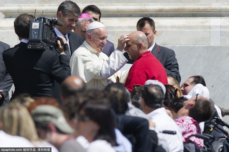 当地时间2015年6月10日,梵蒂冈,罗马教皇弗朗西斯在圣彼得广场会见教众举行弥撒。(图片来源:希帕中国)
